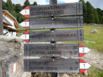 La proposta di quest’anno è il “Sentiero Frassati dell’Alto Adige”, inaugurato nel 2012, che porta da Latzfons al santuario di Santa Croce (2311 metri) e al vicino rifugio per un dislivello di circa 800 metri.